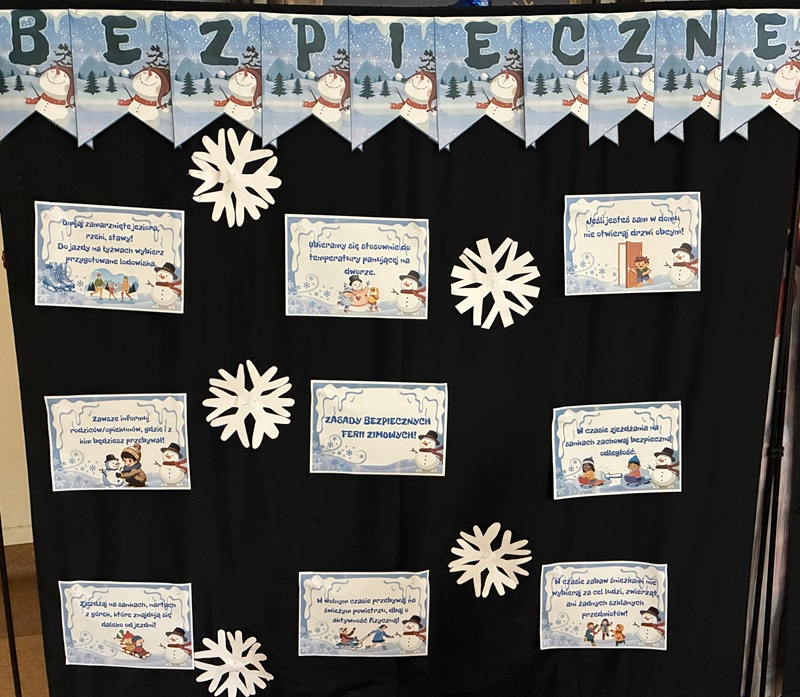 Zbliżające się ferie zimowe (02.02.2026-15.02.2026) to czas zabawy, odpoczynku i aktywności na świeżym powietrzu. Aby ten okres upłynął wszystkim radośnie i bezpiecznie, przypominamy najważniejsze zasady, którymi warto kierować się podczas zimowych aktywności.