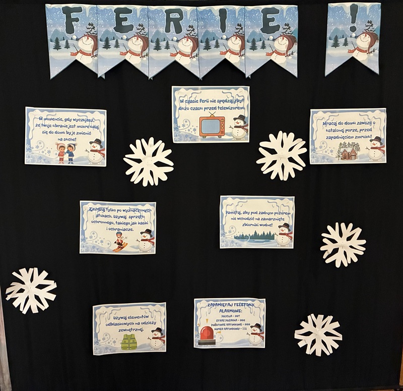 Życzymy wszystkim uczniom radosnych, pełnych zabawy i przede wszystkim bezpiecznych ferii zimowych! Bawcie się dobrze i dbajcie o siebie oraz innych.